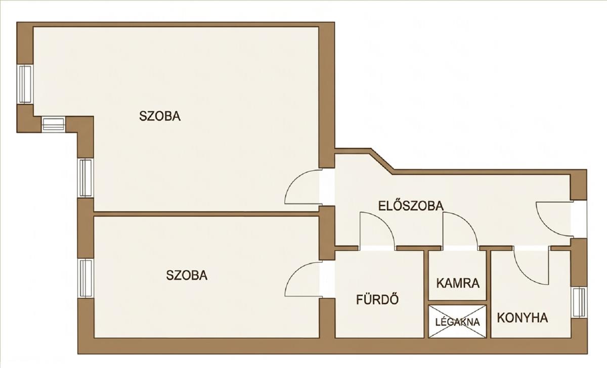 A szobák a csendes Paulay Ede utcára, a konyha ablaka belső udvarra néz. Elrendezése praktikus, konyha, kamra, fürdőszoba, nappali és hálószoba.