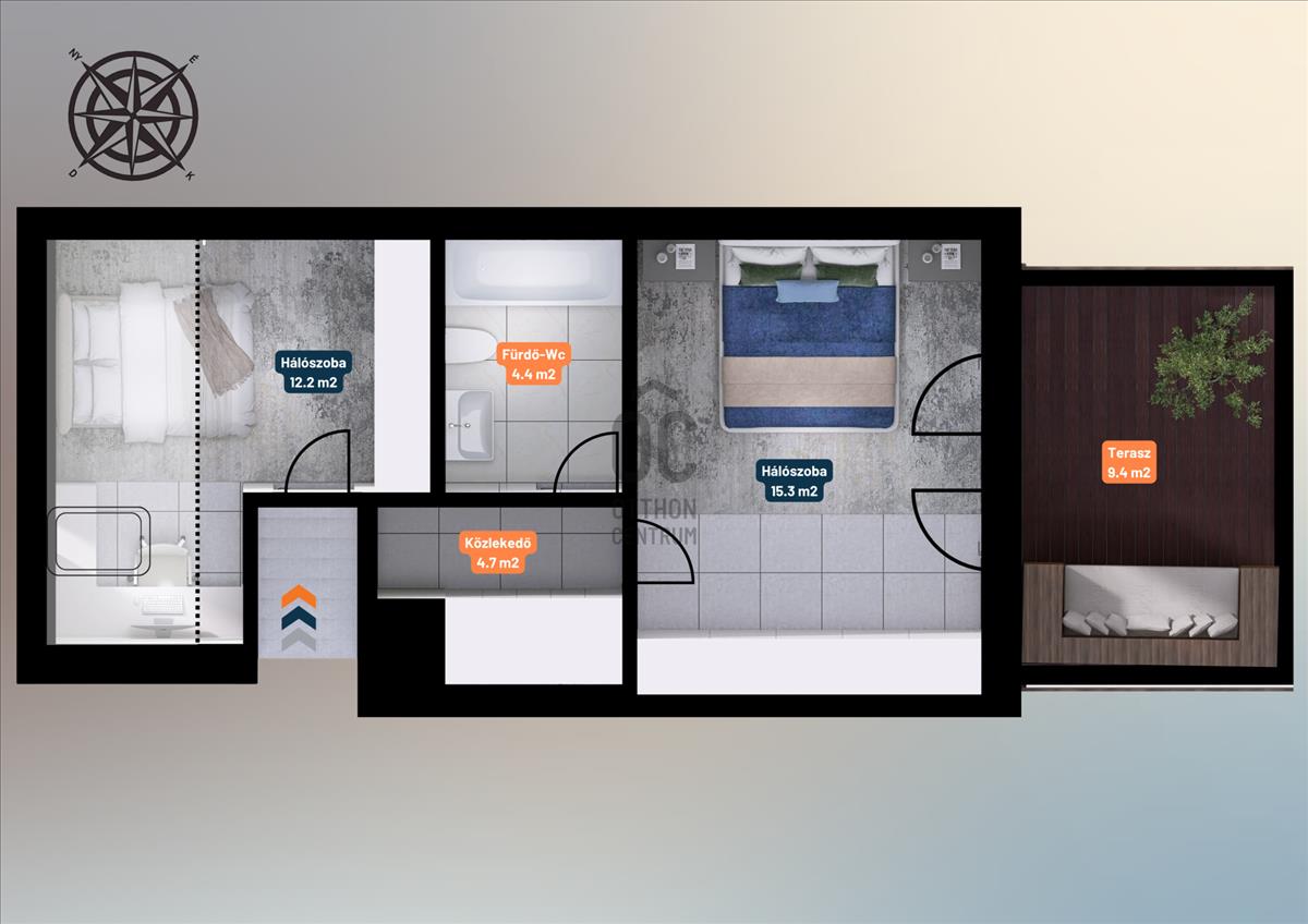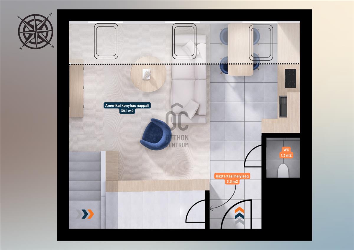 ✅ Tájolása délnyugati, világos, napos és logikusan bútorozható terekkel rendelkezik.
