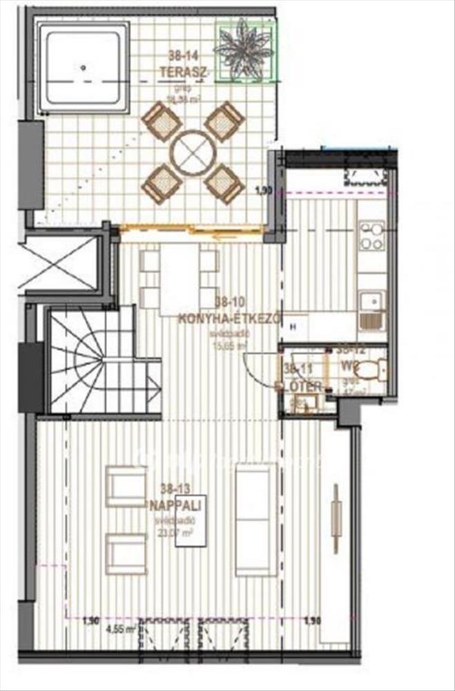 Belső kétszintes 127nm-es, 5 szobás lakás, 22, 6nm-es tetőterasszal, ahol jakuzzi kialakításra is lehetőség van.