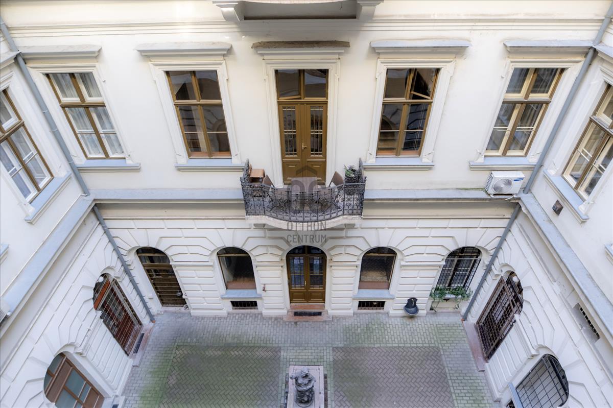 Az épület felújított, liftes, udvarán restaurált, korabeli kútszoborral.