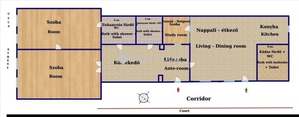 3 fürdőszoba → több bérlő, magasabb hozam