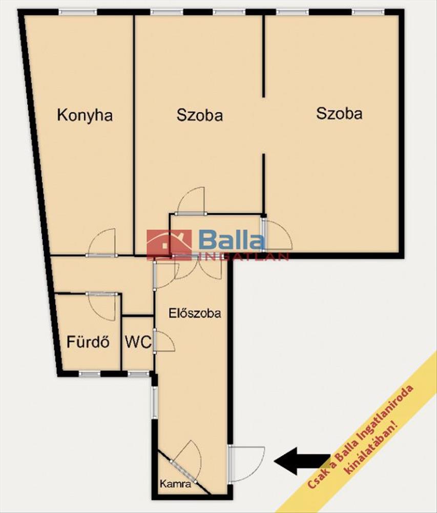 -82 m², 2 külön nyíló szoba → könnyen 3 szobássá alakítható