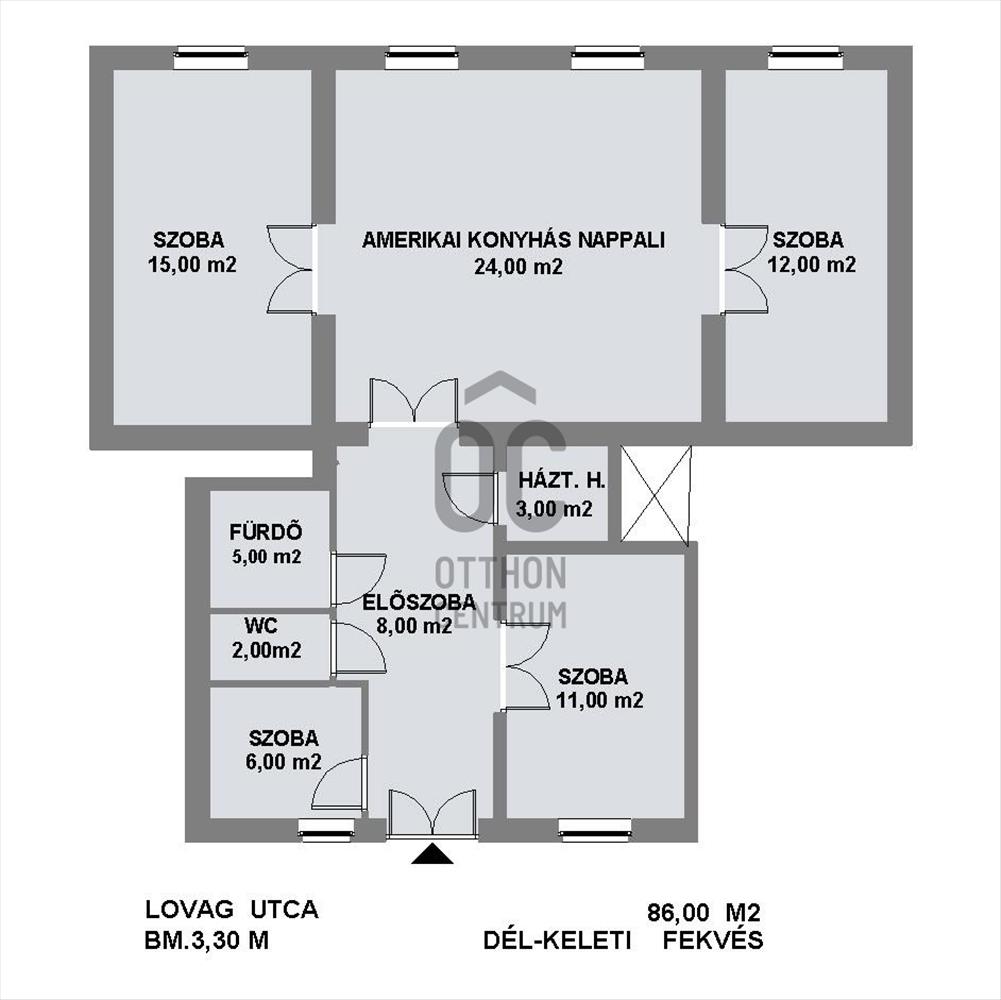 Budapest VI. kerületének Belső-Terézváros részén, az egyirányú Lovag utcában, felújított, liftes, impozáns nagypolgári társasház, első emelet, 86 négyzetméteres, tágas amerikai konyhás nappali, három hálószoba és dolgozó, két fürdőszoba. Egy egyedi lakás, ahol a modern bútorok stílusosan összhangban áll a régi nagypolgári báj minden elemével.