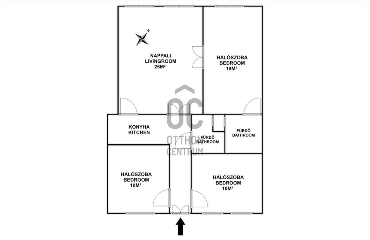 - 87m² alapterület, nappali, 3 külön nyíló hálószoba, 2 fürdő, külön konyha, tágas előszoba