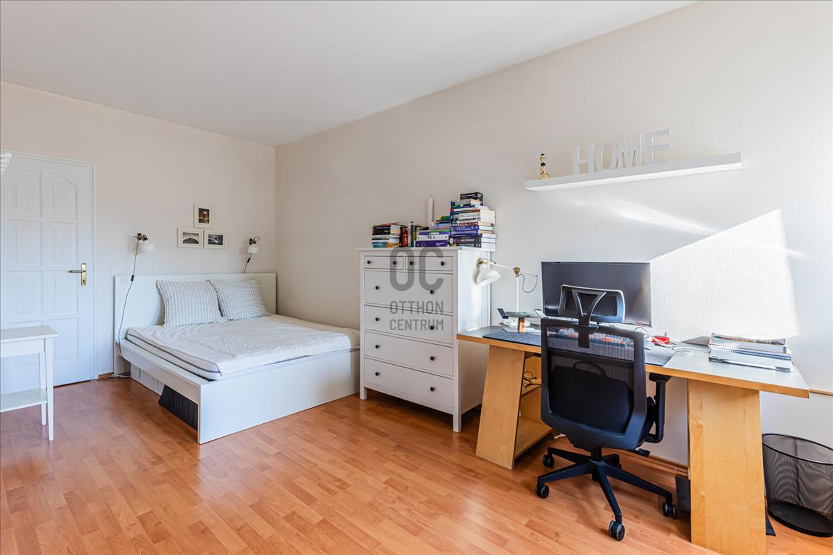 A lakás rendkívül világos, kiváló elrendezésű. Tágas nappalival rendelkezik, melyhez külön helyiségben kapcsolódik a gépesített konyha, kis étkezősarokkal. a hangulatos, nagy méretű hálószobához egy külön gardrób szoba is tartozik. Az előszobából nyílik a zuhanyzós fürdőszoba. a lakás előtti körfolyosót más már nem használja, nincs átjárás rajta, így itt egy saját kis kiülős erkély is kialakításra került.