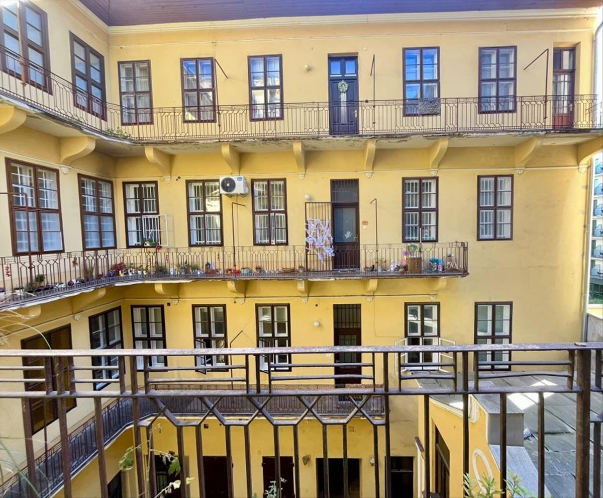 A lakáshoz kapcsolódik egy függőfolyosó végi kiülési lehetőség, amely nemcsak praktikus, hanem egyfajta belső udvari „városi terasz” élményt is ad – ritka adottság a belvárosban.