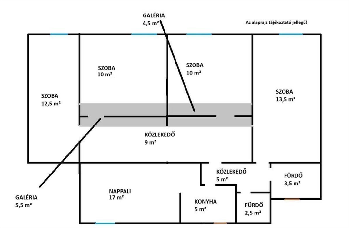 - Elosztás: Tágas nappali + 4 külön nyíló szoba + ablakos konyha.