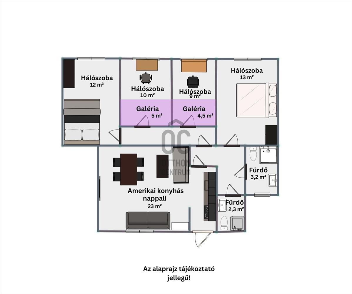 - Az amerikai konyhás nappali, a két fürdőszoba és a négy hálószoba kényelmes, praktikus elrendezést biztosít nagycsaládok, vagy akár több lakótárs részére.