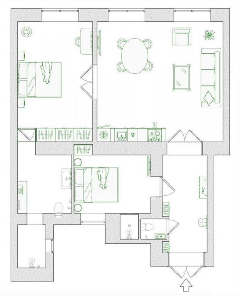 Az átgondolt elrendezés része egy 30 m2-es nappali amerikai konyhával, két külön hálószoba saját fürdőszobai kapcsolattal, vendégfürdő, valamint tágas előszoba.