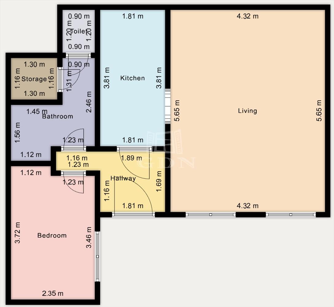 50 m², nappali + különnyíló hálószoba