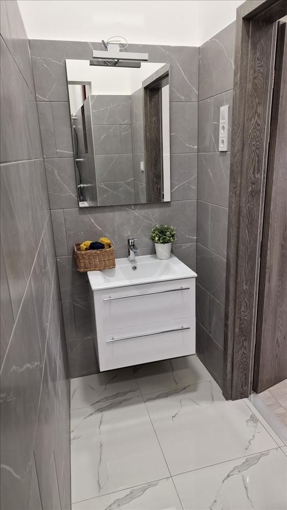 Új víz- és villanyvezetékek, burkolatok, szaniterek, beltéri ajtók és lámpatestek