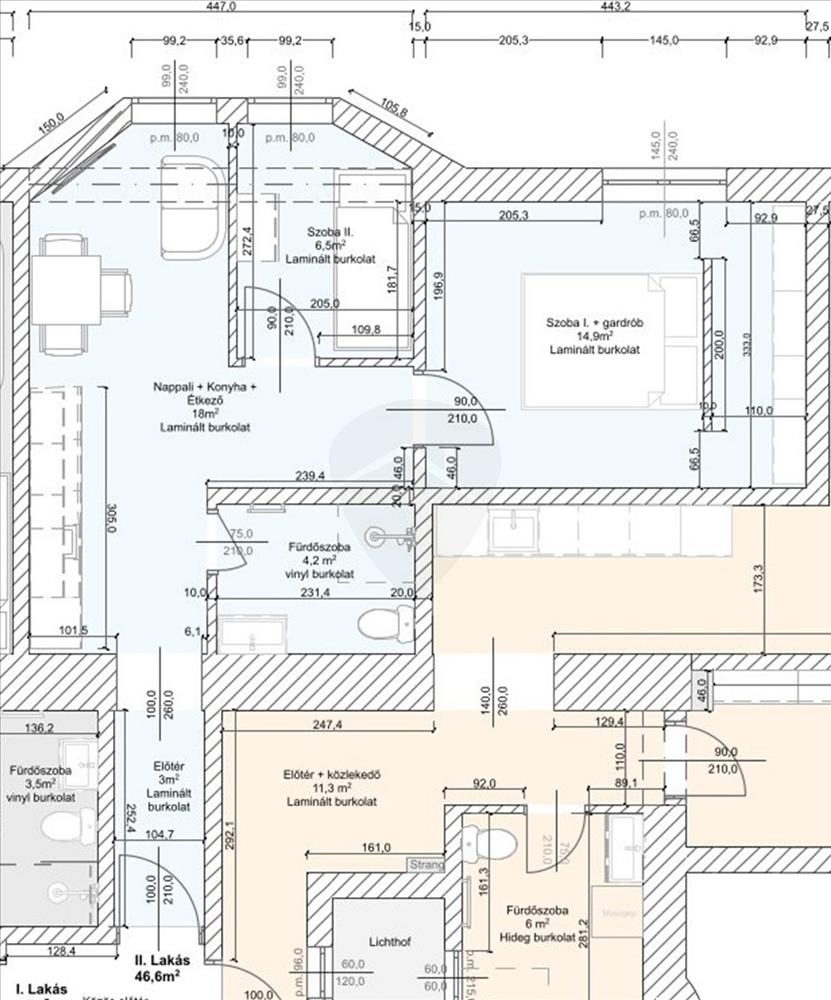 Ez a 46, 6 m²-es, kifinomult arányokkal megtervezett otthon a klasszikus belmagasság eleganciáját ötvözi a mai, letisztult belsőépítészeti megoldásokkal. a térszervezés tudatos: nappali + két külön nyíló hálószoba, valamint egy külön gardróbszoba – ami ebben a méretkategóriában ritka és valódi értéknövelő tényező.