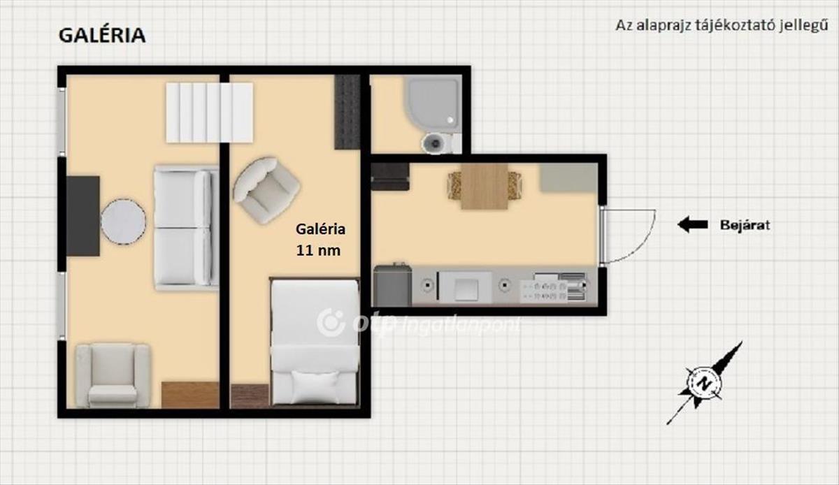 A tágas, 375 cm-es belmagasságú térben egy 170 cm magas galéria is helyet kapott, amely tovább növeli a használható területet. a lakás földszinti elhelyezkedése kényelmes és biztonságos, a fűtés elektromos panelekkel megoldott, ami modern és hatékony megoldás.