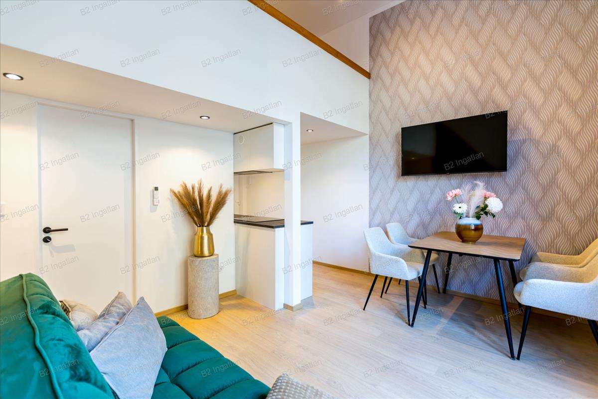 Each apartment ranges between 26–37 m², equipped with a comfortable standing-height mezzanine, a modern bathroom, fully fitted kitchen, and complete furniture.