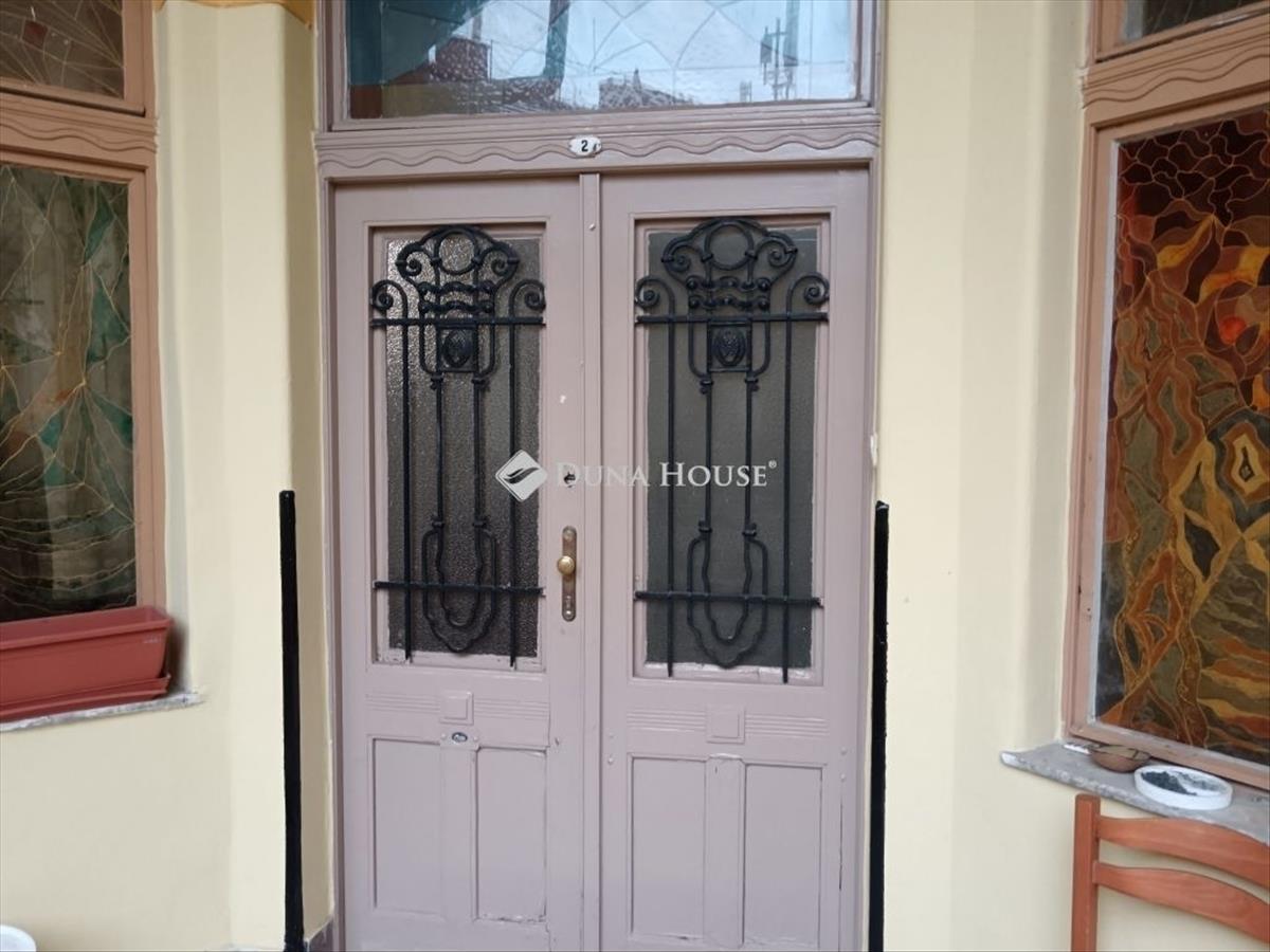 Eladó egy, 103 m^2-es nagypolgári lakás, amely egy lélegzetelállítóan szép, festett üvegekkel díszített lépcsőházban található.