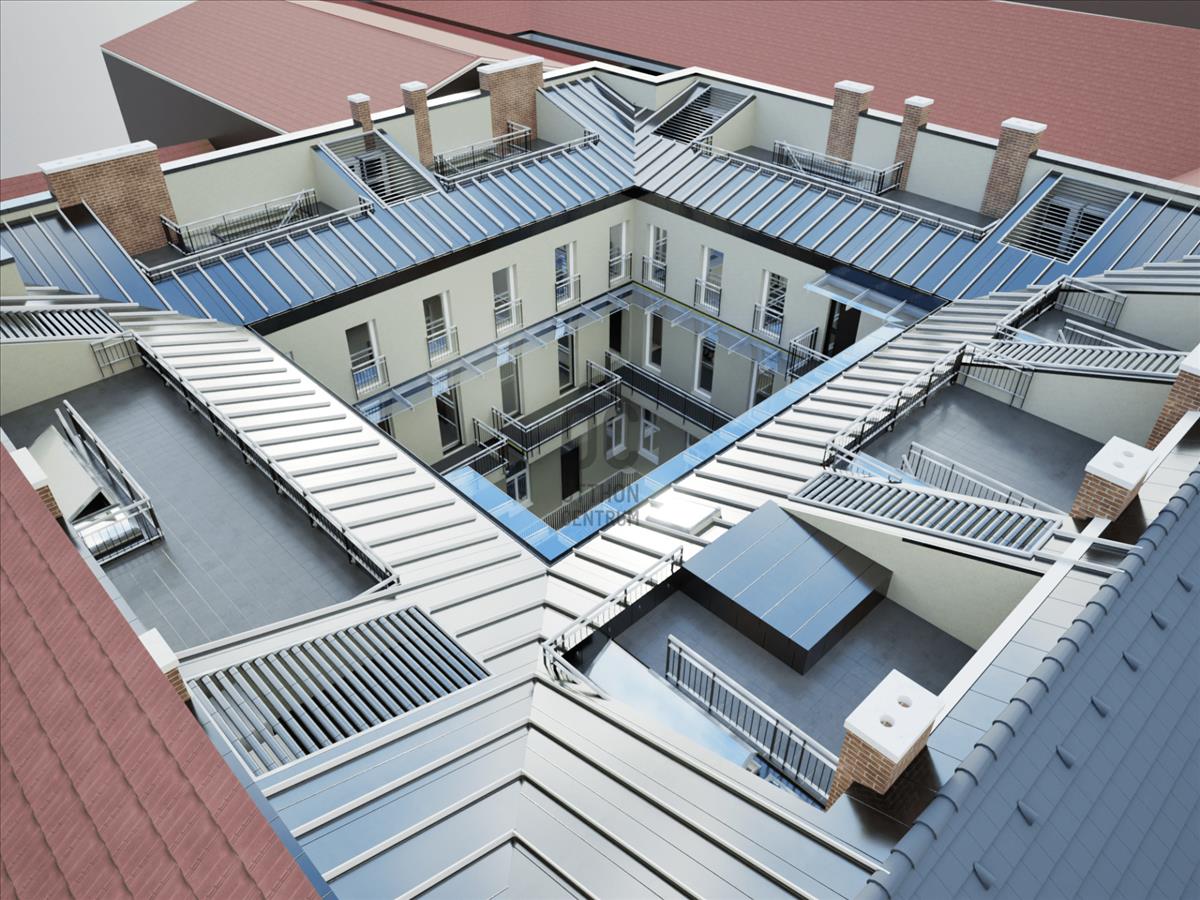 A restaurált épület modern műszaki tartalommal, új szintekkel és tetőteraszos lakásokkal egészül ki, így válik valóban időtálló befektetéssé.