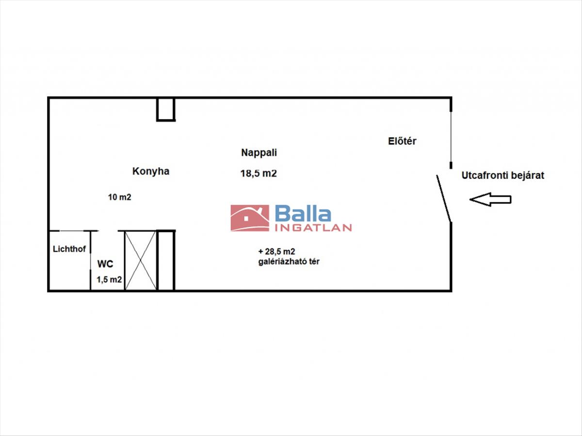 Az ingatlan 30 m² alapterületű, belmagassága 483 cm, amely lehetővé teszi két, kompromisszumok nélküli, teljes értékű belső lakószint kialakítását. Az ilyen adottság a belvárosban kifejezetten ritka, így az ingatlan kiváló választás lehet saját célra vagy befektetésnek egyaránt.