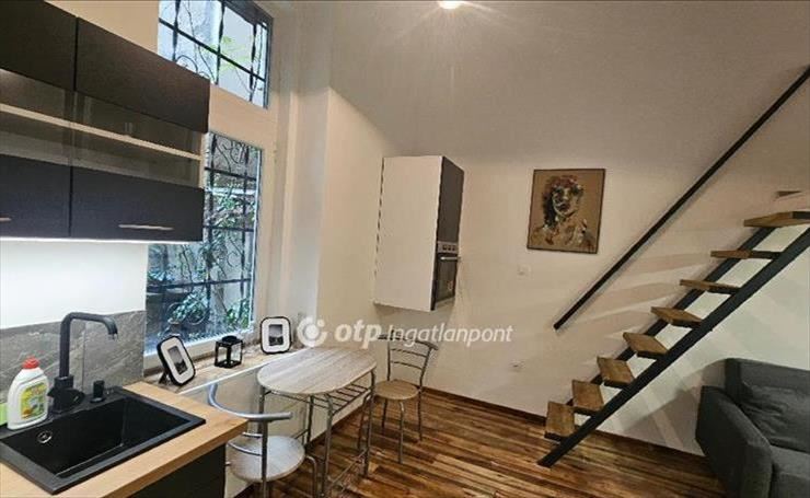 Eladó Budapesten a 7. kerület gyorsan fejlődő részén, a Városligethez közel, jó állapotú társasházban egy 20 m2 alapterületű belső 2 szintes mini-garzon, mely alul 12 m2-es (nappali+fürdő, felúl pedig 8 m2-es galéria (emeleti rész) háló.