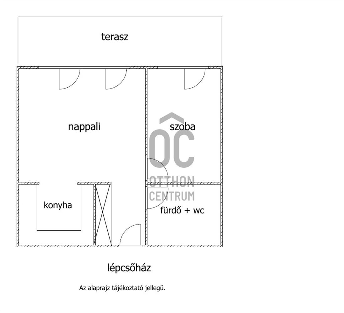 A lakás földszinti, tulajdoni lap szerint 45 m2, 2 szobás, 8 m2 terasszal.
