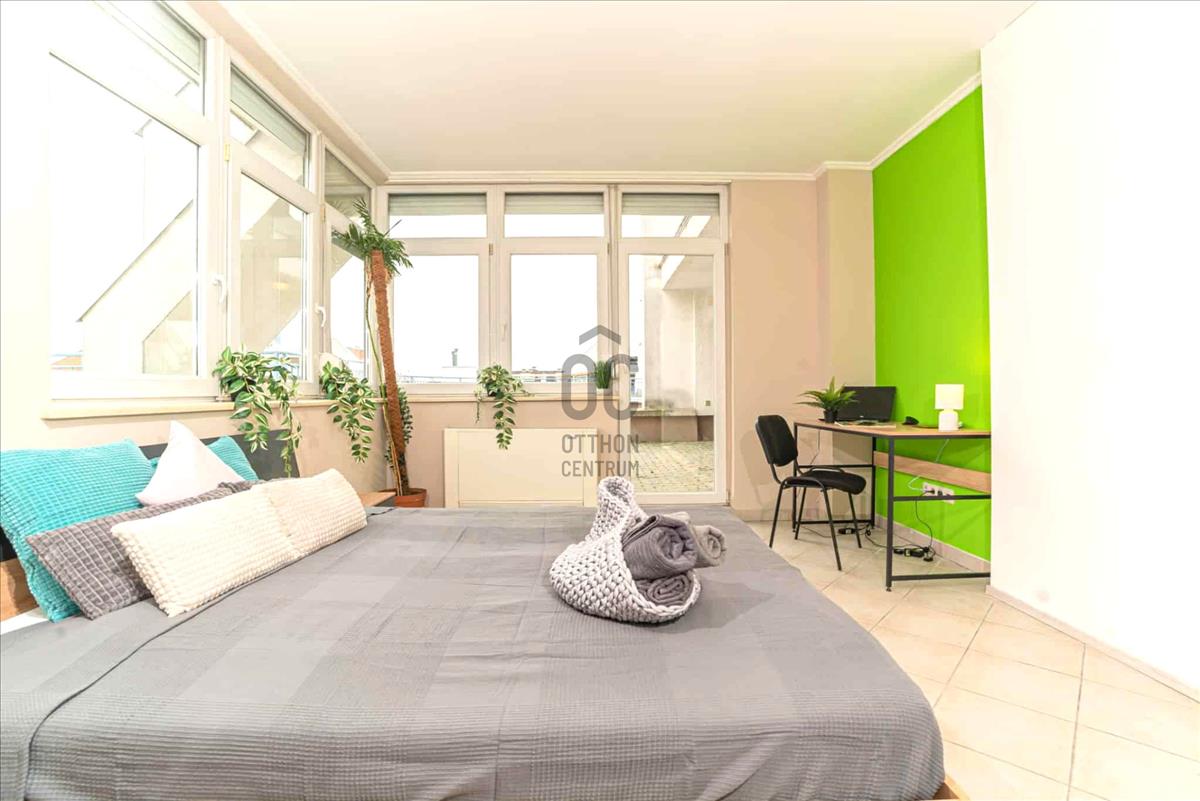 A városliget közelsége, felső emeleti, panorámás, hatalmas tetőkert,