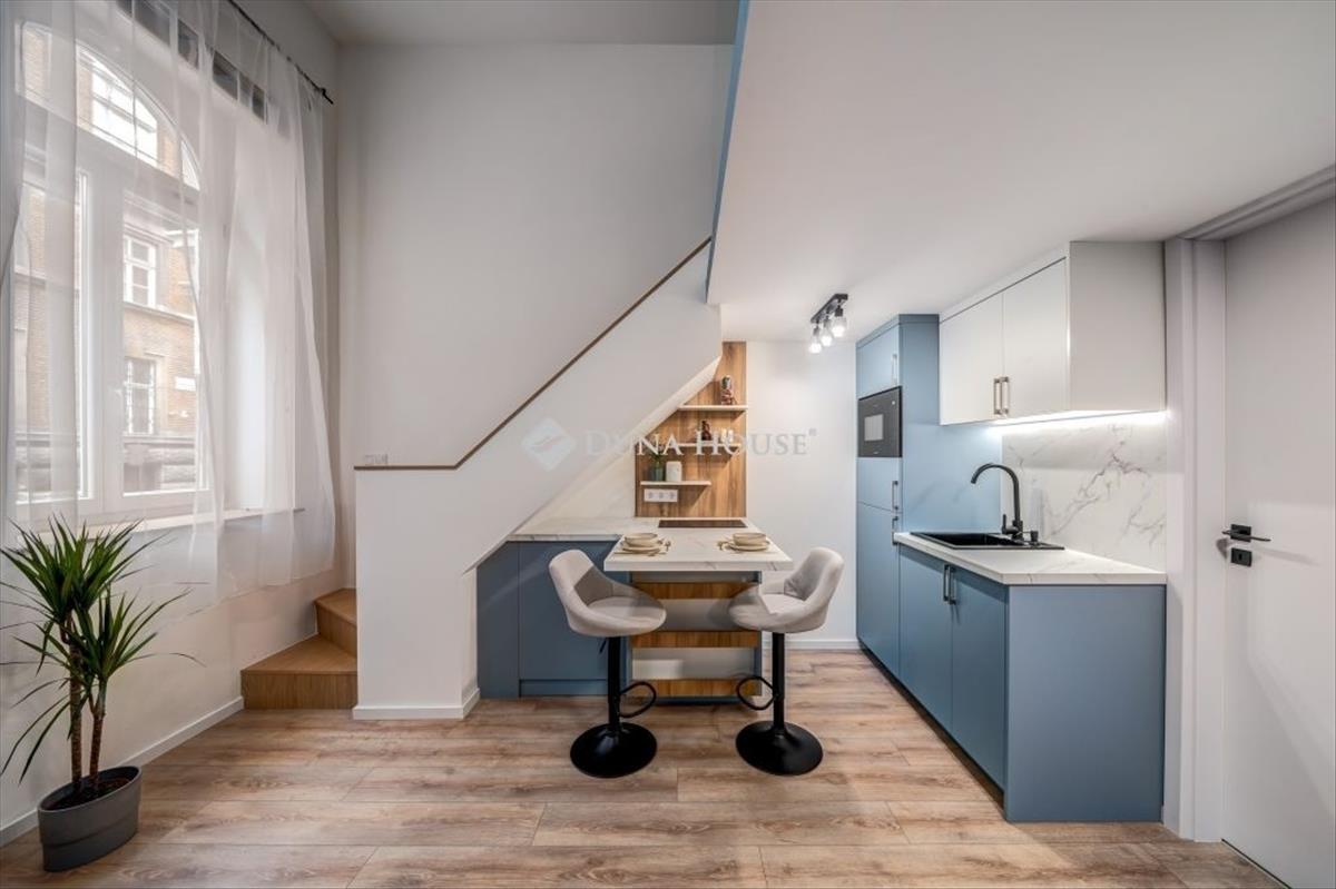Liszt ferenc tértől 200 méterre, a Kertész utcában - napos, prémium lakás! * Első lakóját váró, beleszeretős ingatlan*- értékes lokációban, a történelmi belvárosban- rendezett, patinás épületben- utcai nézetű, napos! - Földszinti elhelyezkedés- 33 nm hasznos alapterület, melyből az alsó szint: 21 nm állógaléria: 12 nm - a galérián 190 cm a belmagasság- belsőépítész által tervezett átgondolt, élhető terek- gyönyörű belső kialakítás- padlófűtés + villanybojler- a fotók a valós állapotot mutatják! a vételár a képeken látható bútorozott állapotot tartalmazza. Jogilag rendezett hátterű, ügyvédi használati megosztási szerződéssel megvásárolható ingatlan. További információkkal, megtekintéssel kapcsolatban várom hívását!