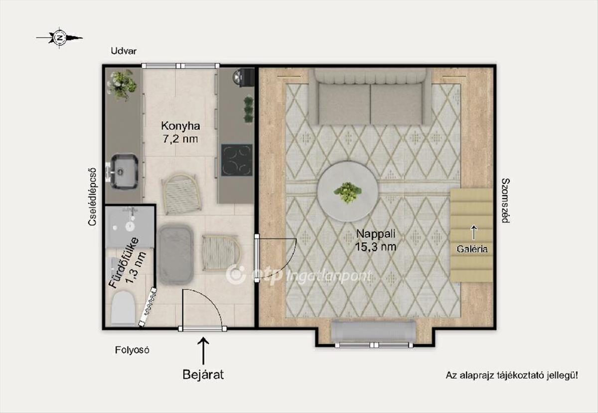 A lakás számos előnnyel rendelkezik: kompakt, jól kihasználható tér, alacsony rezsiköltség, kiváló bérbe adóhatóság, stabil befektetési potenciál.