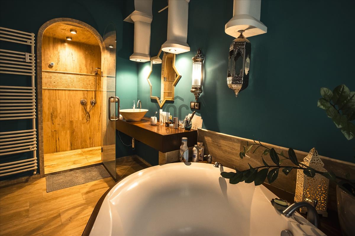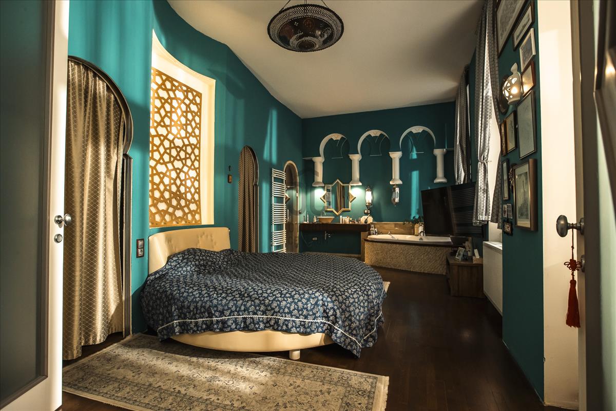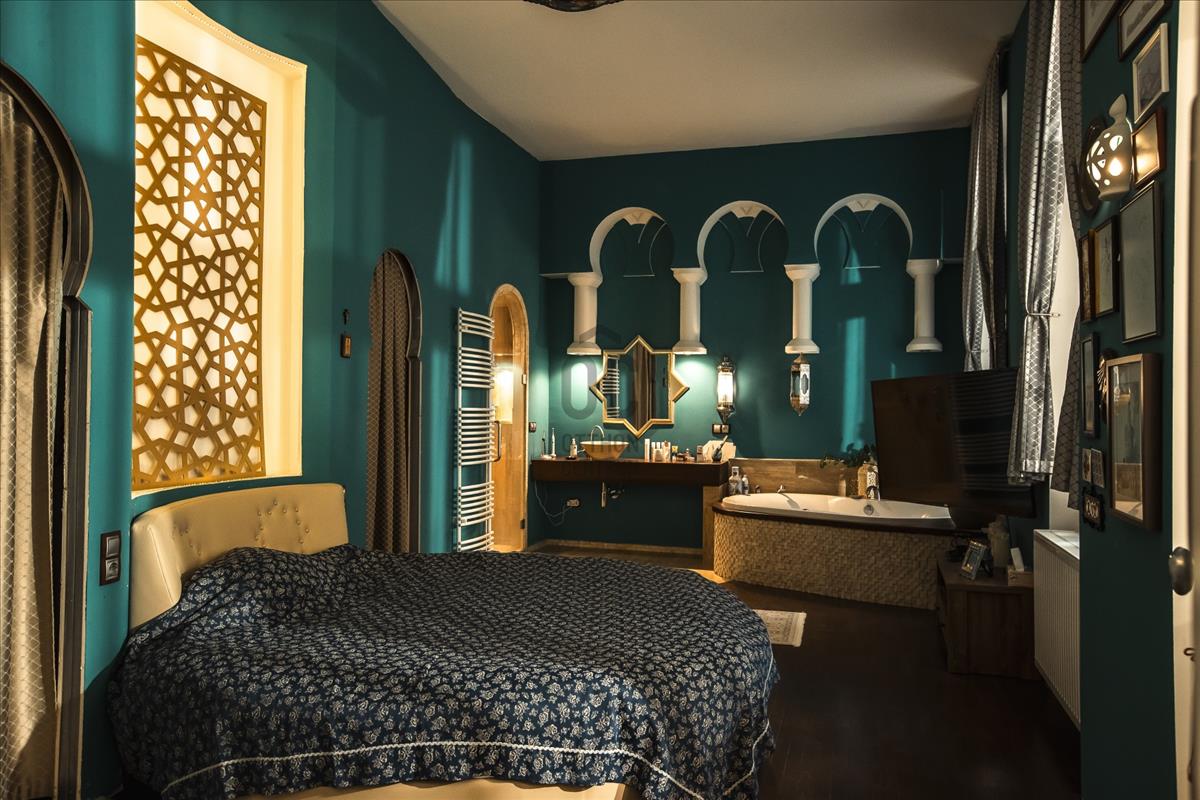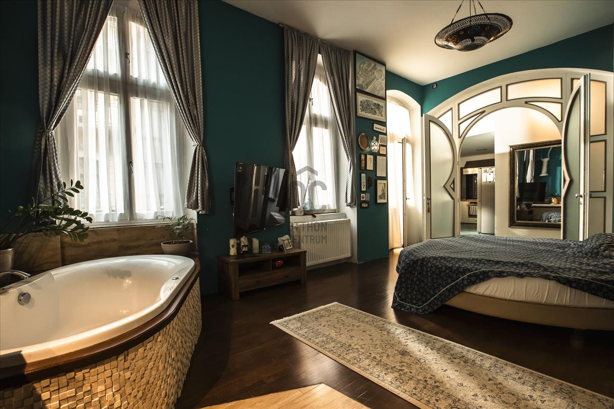 - Fő hálószoba keleties hangulatú, hozzátartozó gardróbszoba és kádas fürdő tartozik.
