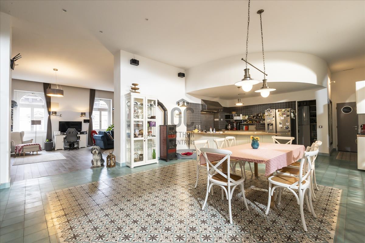 Az ingatlan 1900-években épült, impozáns társasház harmadik emeletén található, amely a belváros klasszikus, mégis élhető arcát képviseli. a lakás két HRSZ-el rendelkezik, 2015-ben két egymás melletti lakásból lett kialakítva a mai alaprajz. a felújítás alatt fontos szempont volt az energiahatékonyság. a 400 cm-es belmagasság elegáns, polgári atmoszférát kölcsönöz a lakásnak, míg a nagy ablakok és a nyugati tájolás révén a terek napfényben fürdenek a nap nagy részében. Az utcai nézet dinamikus, városi panorámát kínál, amely a főváros vibráló életérzését hozza be a mindennapokba.