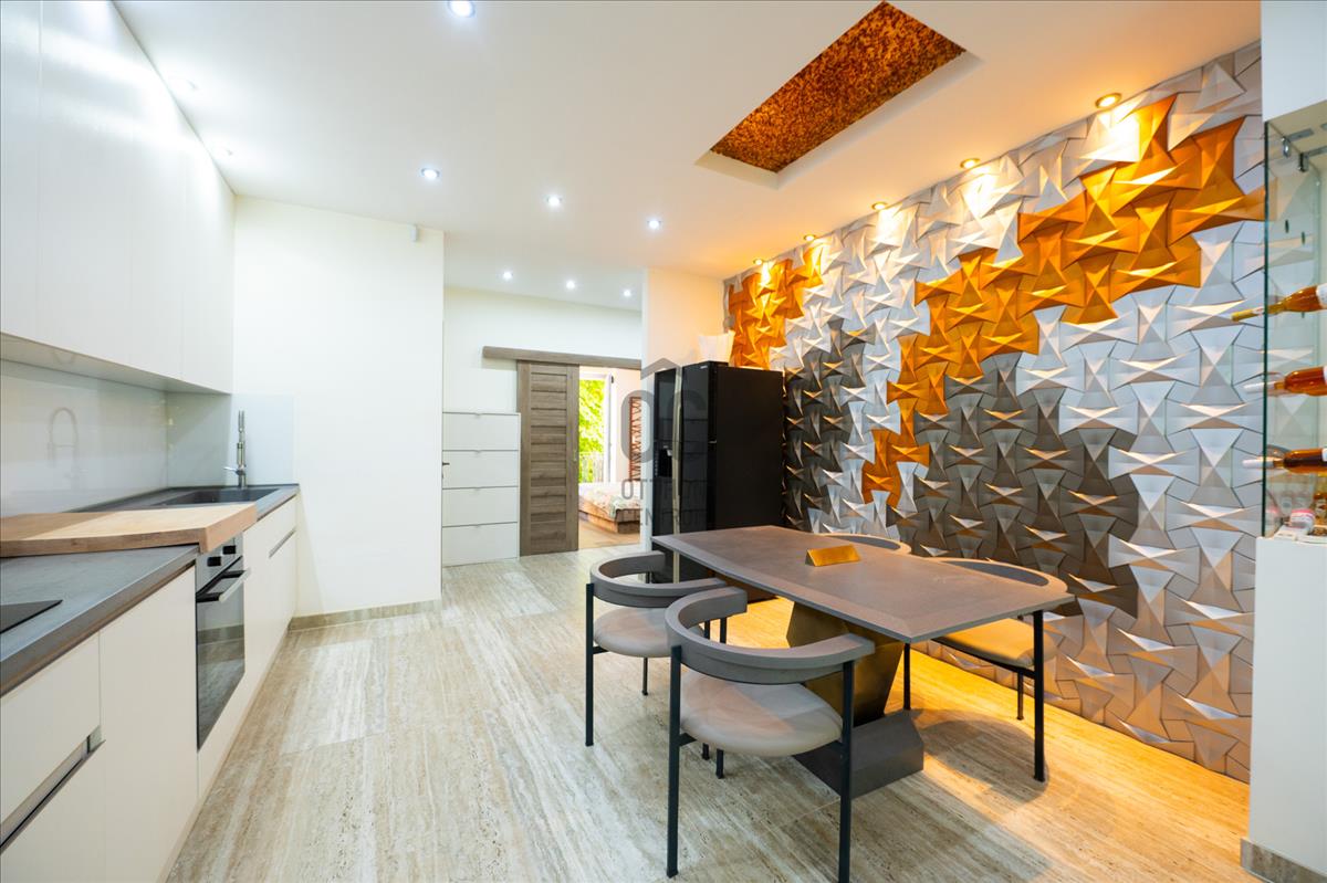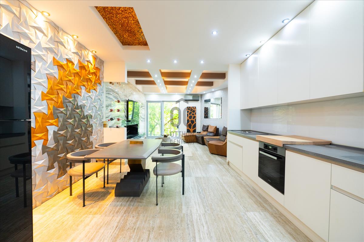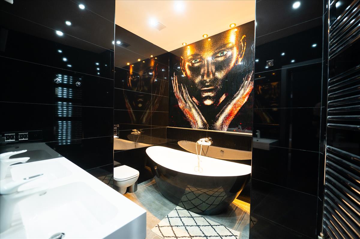 Az elrendezés kifinomult, a kivitelezés prémium minőségű. Márvány- és gránitburkolatok, design radiátorok, egyedi bútorok és exkluzív faldekor teszik teljessé a különleges atmoszférát. Minden részletben érezhető a tulajdonos gondos figyelme és a luxus iránti elkötelezettsége.