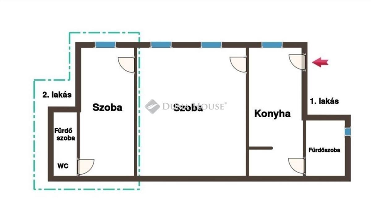 Az ingatlan különlegessége, hogy jelenleg természetben egyetlen tágas 42 m²-es két szobás lakásként funkcionál, de jogilag két külön helyrajzi számon szerepel. Ez azt jelenti, hogy az új tulajdonos minimális ráfordítással bármikor visszaállíthatja az eredeti állapotot, így egy 13 m²-es és egy 29 m²-es, külön bejáratú garzont kaphat, amely kiadás esetén dupla profitot vagy akár egy különálló irodát és lakást is eredményezhet.