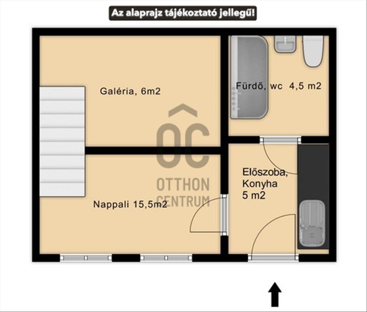 Helyiséglista: Galériázott nappali, konyha, kádas fürdőszoba.