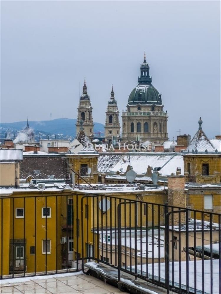 Eladó panorámás lakás a Madách téren terasz, fény, városi életérzés! a belváros szívében, a közkedvelt Madách téren kínálunk eladásra egy 75 m²-es, 7. emeleti, 3 szobás lakást, lenyűgöző panorámával a Bazilikára. a lakás tágas és világos, valamint a 40 m²-es, panorámás teraszról páratlan kilátás nyílik Budapest ikonikus épületeire. a házközponti fűtés egyedi méréssel alacsony rezsit biztosít, a modern elosztás pedig ideális akár családnak, akár befektetésnek. a városi élet minden előnye karnyújtásnyira: éttermek, kávézók, kulturális központok és a Deák tér néhány lépésre találhatók. Főbb jellemzők:-75 m², 3 szoba nagy terasz-A környéken egyedülálló, 40 m²-es, panorámás terasz-7. emelet, nem tetőtér, liftes ház-Bazilikára néző panoráma-Házközponti fűtés, egyedi mérővel-Kiváló elhelyezkedés, remek közlekedésKörnyék:Az ingatlan Budapest belvárosának egyik legkedveltebb részén, a Madách Imre téren található. a környék kiváló infrastruktúrával és közlekedési adottságokkal rendelkezik: metrók, villamosok, üzletek, éttermek és kávézók néhány perc sétával elérhetők. a pezsgő városi élet és a központi elhelyezkedés miatt a lokáció kiemelten keresett, mind saját célra, mind befektetésre. Stabil értéktartás, erős bérleti kereslet jellemzi. Az ingatlan azonnal költözhető. Ez a lakás ideális választás mindazok számára, akik prémium minőségű otthont keresnek Budapest pezsgő belvárosában, exkluzív kilátással és kivételes hangulattal. a környék Budapest egyik legélénkebb és legkedveltebb része: kávézók, éttermek, kulturális intézmények és bevásárlási lehetőségek pár perc sétával elérhetők. a tömegközlekedés kiváló, a belváros minden pontja könnyedén megközelíthető gyalogosan vagy tömegközlekedéssel. Hitel.hu - Hasonlítsa össze a bankok lakáshitel ajánlatait