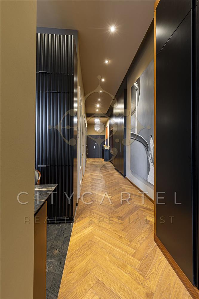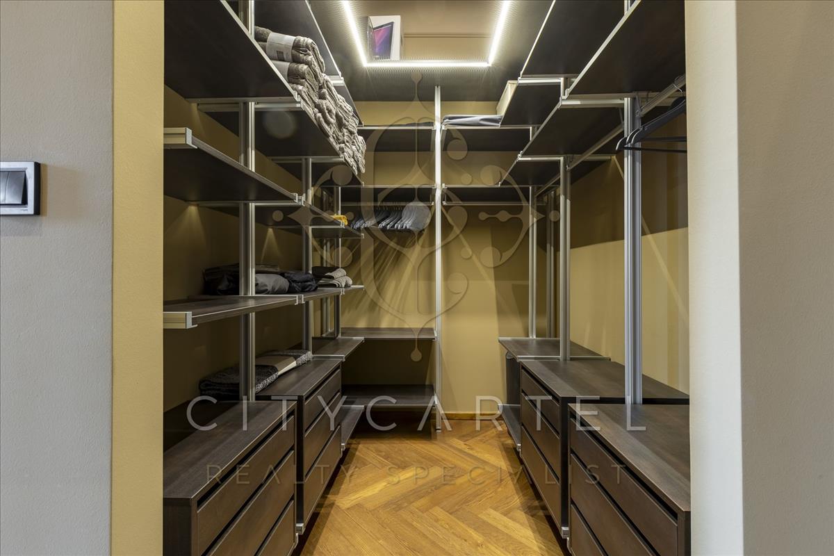 A lakás netto 118 nm-es, amelyhez a nappaliból 5 nm-es, a hálószobából pedig 1, 3 nm-es erkély tartozik, helyiségei: előtér és közlekedő egyedi beépített szekrénysorral és bútorokkal, felszerelt amerikai konyhás nappali, 2 hálószoba, 2 exkluzív fürdőszoba, háztartási helyiség, gardrób.
