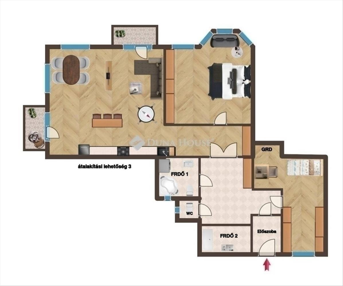 3 szoba, elosztása alapján könnyedén 4 szobássá alakítható
