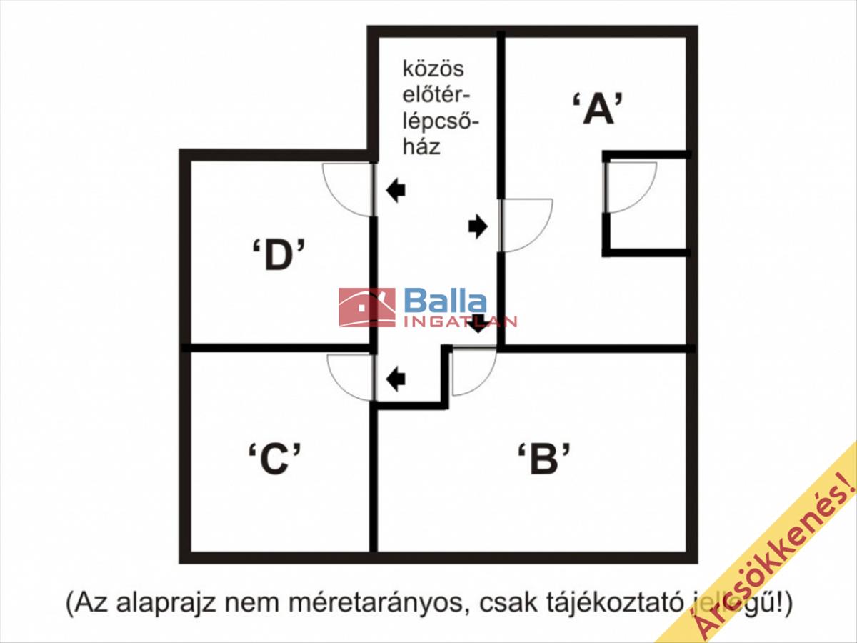 Az ingatlanok egy közös előtérből nyílnak.
