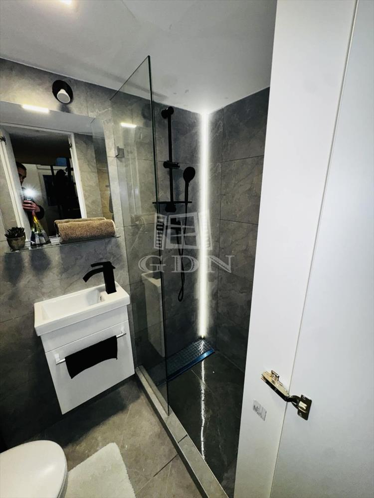 ✅ Fürdő: modern szürke burkolatok, fekete dizájn szaniterek, zuhany, villanybojler, törölközőszárítós fűtőtest, szellőzőrendszer.