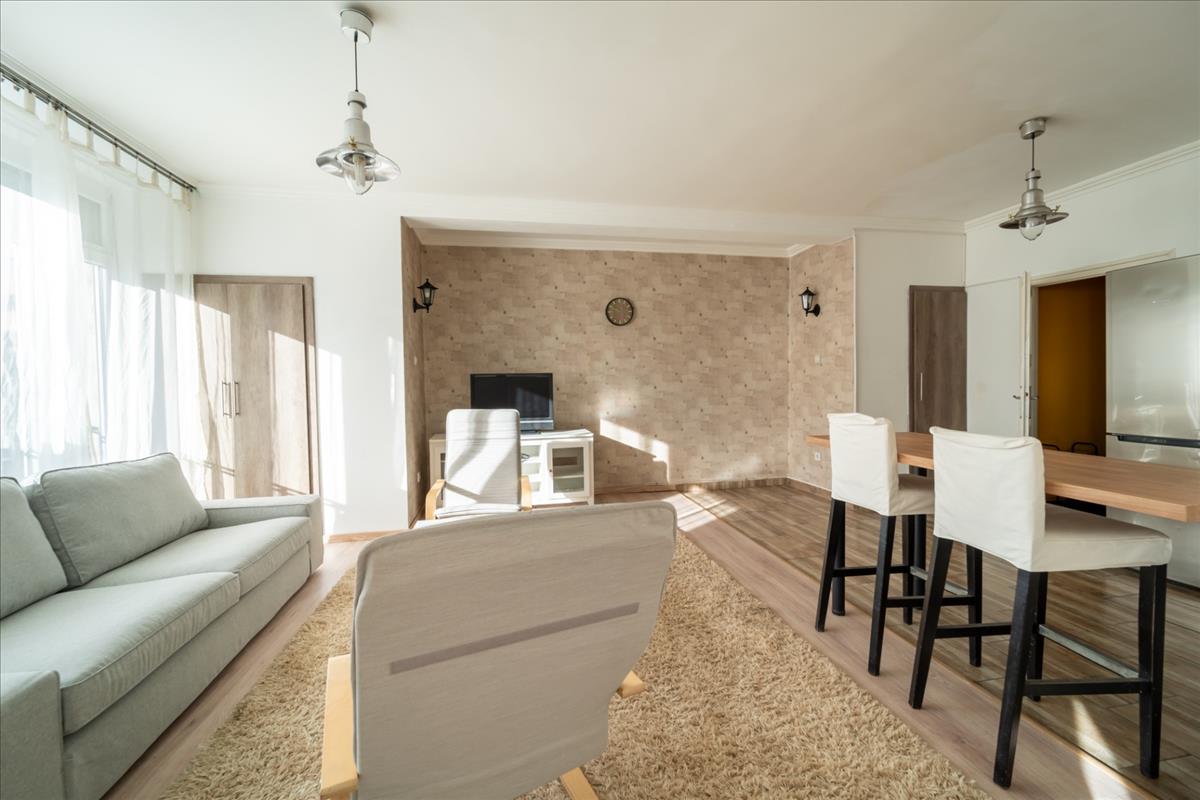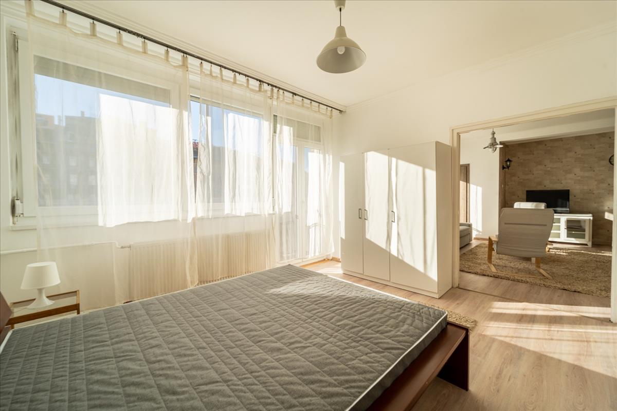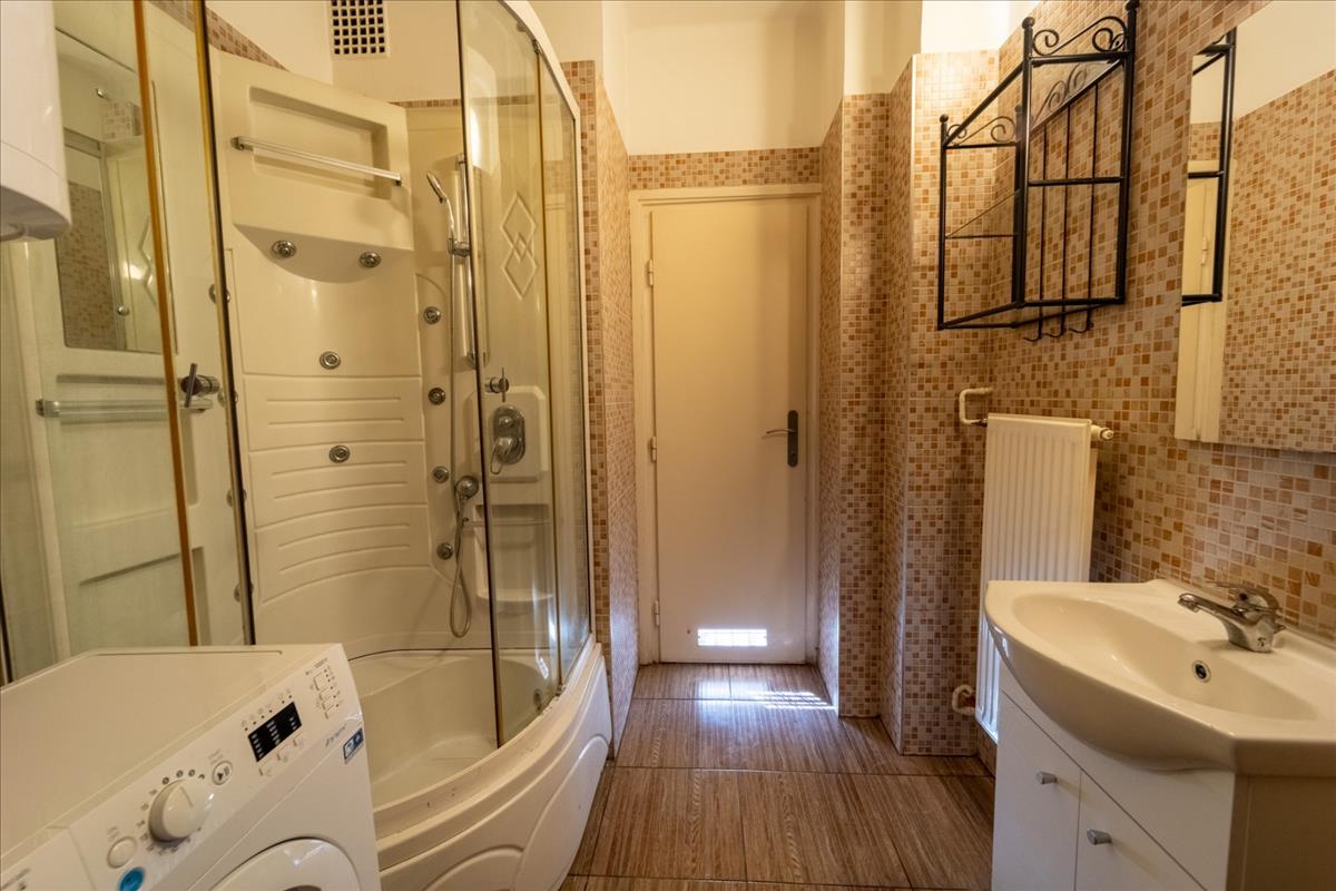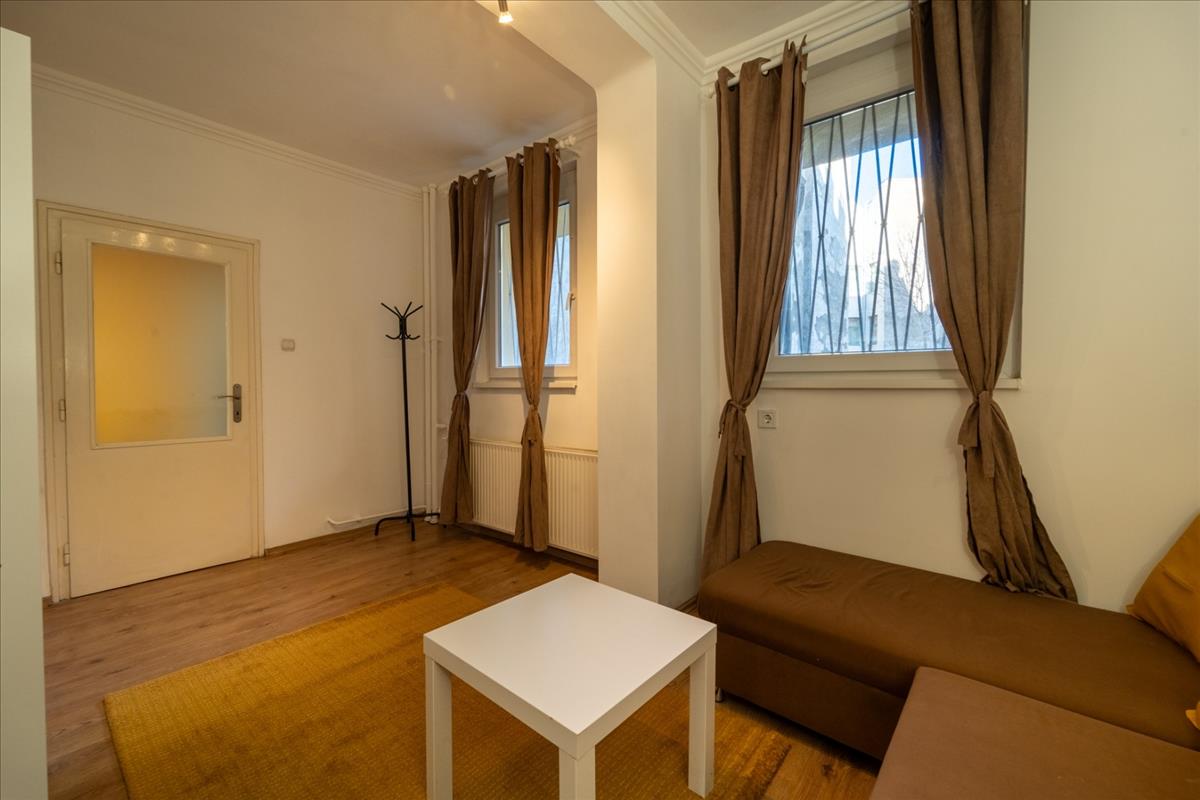 A VII. kerület Baross téren, közvetlenül a metrólejáratnál nappali + 2 hálós, 2 fürdőszobás, bútorozott, gépesített, klimatizált, utcára néző, 74 m2-es lakás eladó. a közös költség 21460 Ft, a fűtésért a földszinti bérlő miatt nem kell fizetni, a víz és a villany egyedi mérés és fogyasztás alapján fizetendő. Műanyag nyílászárós ablakai mindenhol redőnyösek, így a külső zajok éjszaka jól szűrhetőek, nappal pedig délkeleti fekvésének köszönhetően rendkívül világos.Komplett bútorozott és gépesített, a konyha mosogatógéppel és mikróval is felszerelt, de spájz és egyéb tárolóhelyek is kialakításra kerültek, a jelenlegi bérlők befektetési vásárlás esetén szívesen maradnának az ingatlanban.