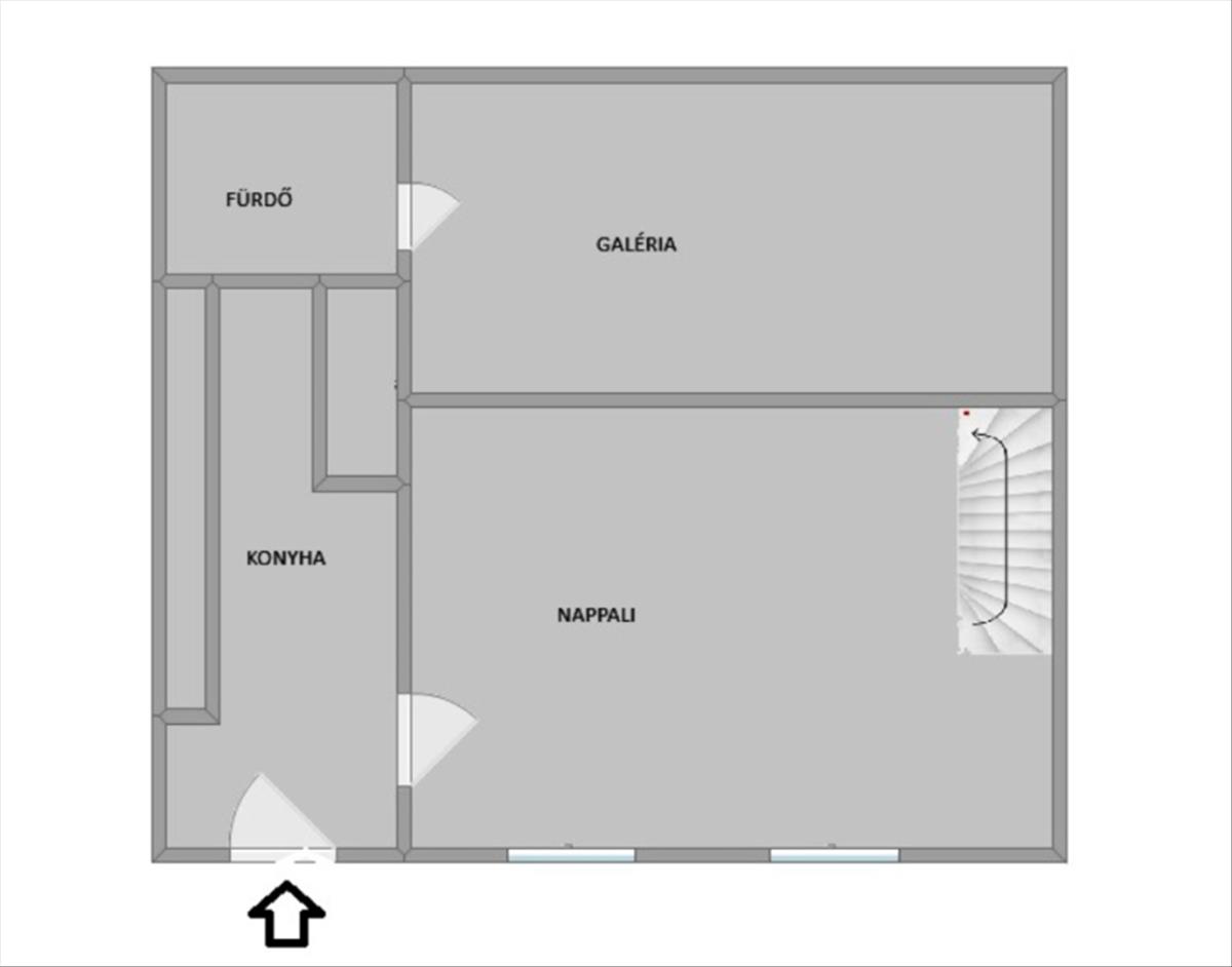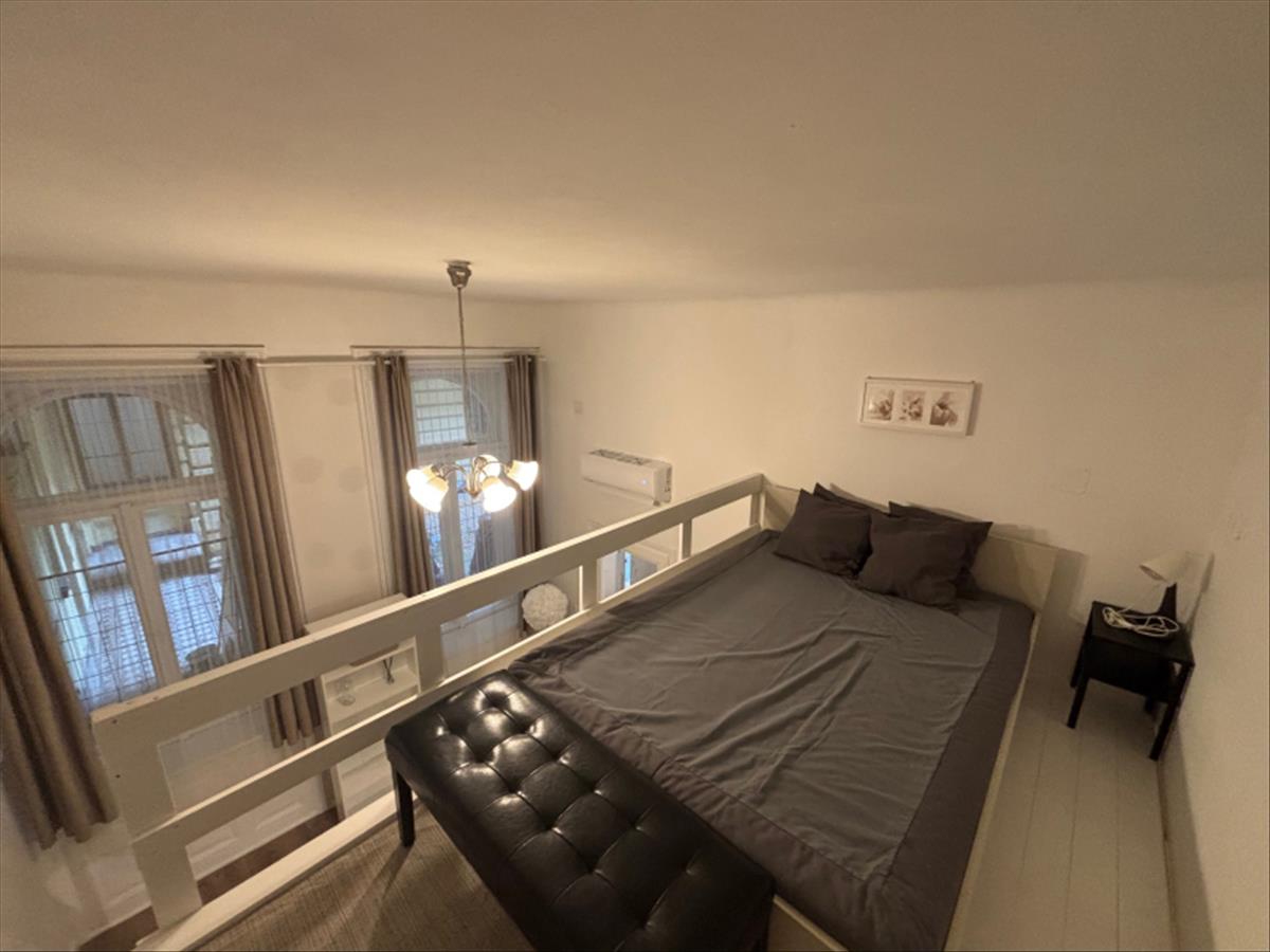 Nappaliban a fotókon látható, nem meredek, kényelmes lépcsőn jutunk fel a jelenleg hálószobaként funkcionáló galériára, ami 3, 6 x 2, 1nm -- 180cm magas lakó is állva tud közlekedni.