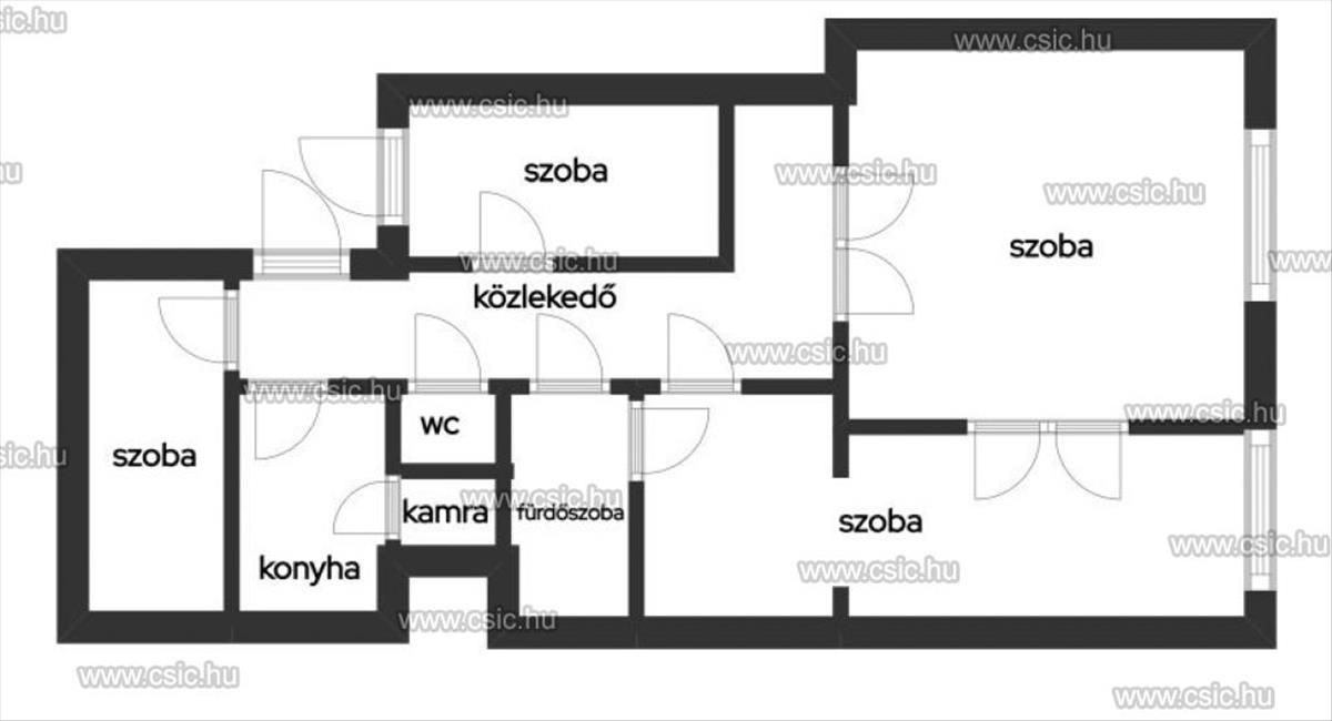 •4 szoba, fürdőszoba, wc, konyha, kamra, előszoba, közlekedő