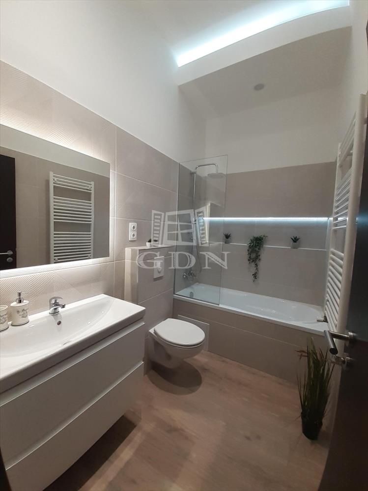 Tágas nappali, két hálószoba, modern konyha, két fürdőszoba (kádas és zuhanyzós), valamint külön vendég wc került kialakításra.