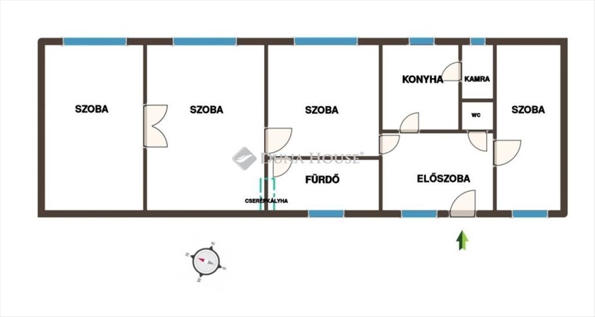 Két ablak új, hőszigetelt, redőnnyel, szúnyoghálóval. a többi nyílászáró még eredeti, fából készült, az udvarra nézőek ráccsal védettek.