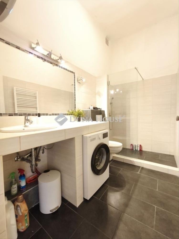 A fürdőszoba zuhanyzós kialakítású, dupla komforttal, külön wc/mosdó helyiséggel.