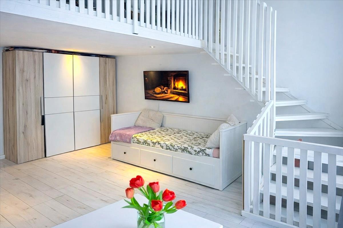 A nappaliból nyíló galéria viszont teljes értékű állógaléria, kényelmesen berendezhető.
