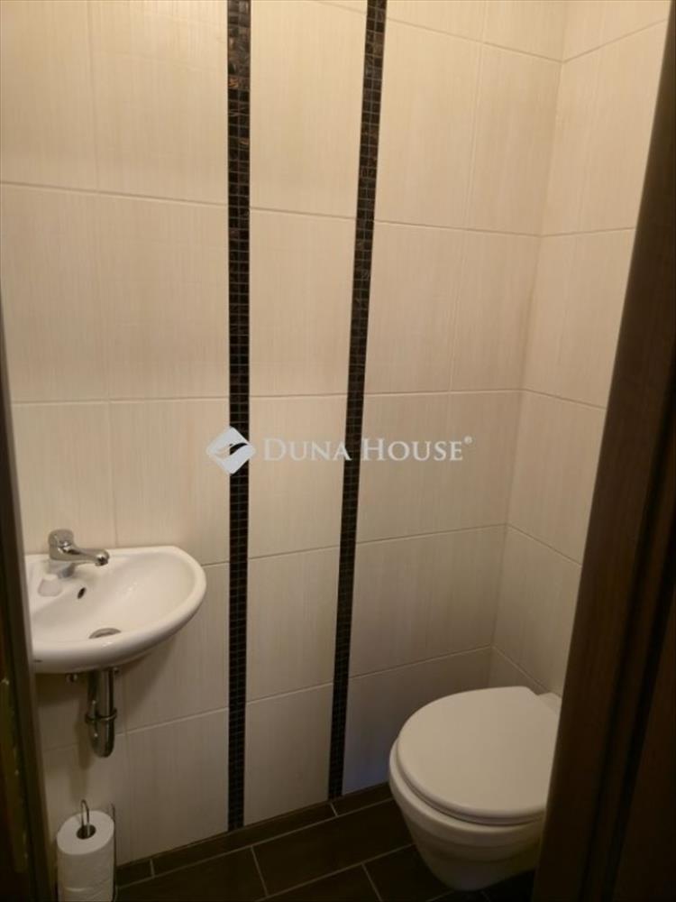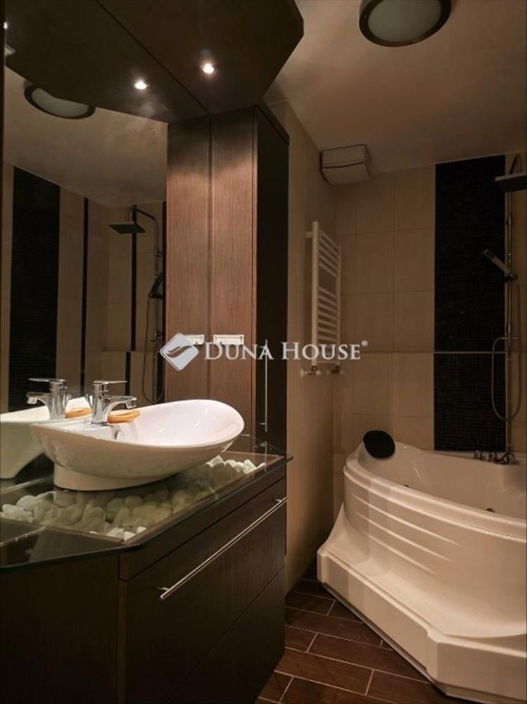 A fürdőszobában egy dzsakuzzis sarokkád kapott helyet, valamint egy dizájnos kézmosó, és egy kissé elszeparált helyiség a mosógépnek, szárítógépnek. a wc külön helyiségben található.