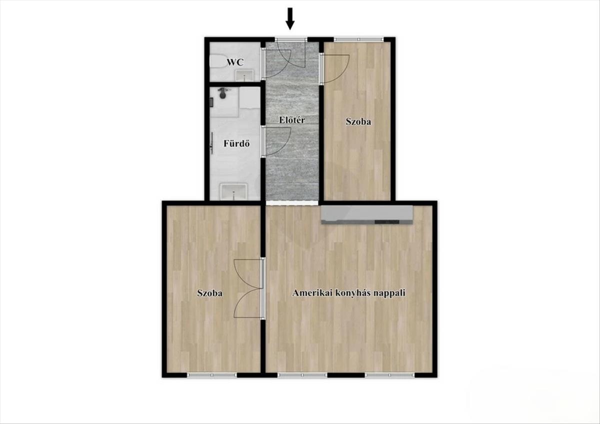 A lakás modernizálva lett és minden helyiség kényelmes méretű. Az amerikai konyhás nappali mellett két külön hálószoba van, így a 64 nm -en ( valóságban 66 nm ) minden kényelmesen elfér.