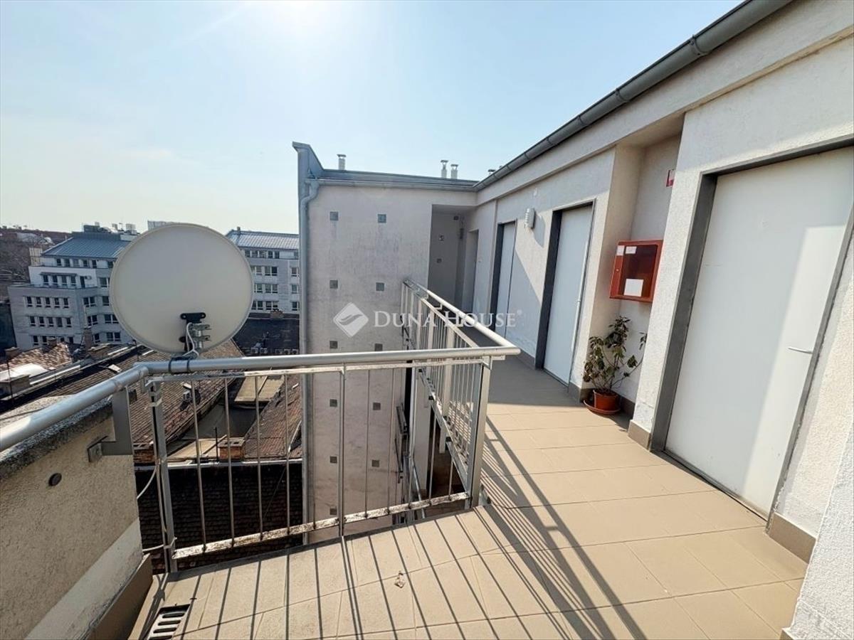 Modern, nagy teraszos lakás a belső VII. kerületbenTökéletes ingatlan a belváros szerelmeseinek, a régebbi épületekkel járó problémák nélkülA 3 hálószobás ingatlanban a jól felszerelt, gépesített konyha és az étkező a nappali egyik sarkában kapott helyet. Ezen kívül 2 fürdő, vendég wc és egy praktikus háztartási helyiség is a lakás része. Mindegyik szoba saját légkondicionálóval van felszerelve és mindegyikből megközelíthető a közel 20m2 terasz. Friss a falak festése és új a lamináltparketta, ezáltal a lakás gyakorlatilag azonnal költözhető. Fűtése házközponti, egyedi mérővel, ezáltal a tulajdonosnak nem kell a rendszeres karbantartásról gondoskodnia. Az ingatlan a legfelső emeleten helyezkedik el, egy rövid falszakasza szomszédos a mellette lévő lakással. a ház 2009-ben épült, külföldre költözés miatt válik meg tőle első tulajdonosa. a lakáshoz további 10 millió forintért megvásárolható egy gépkocsi beálló a ház alatti mélygarázsban. PLEASE contact me for information in ENGLISH!