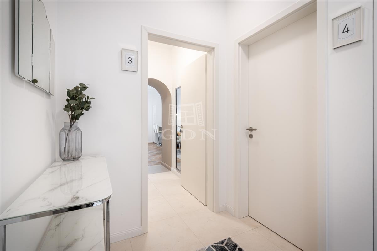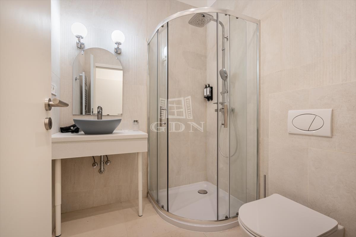 A nettó 64 m²-es lakás két különálló, önálló egységből áll, amelyek mindegyike saját fürdőszobával és konyharésszel rendelkezik. a felújítás néhány éve történt, a helyiségek klimatizáltak, a fűtést elektromos panelek biztosítják. Az ablakok a csendes belső udvarra néznek.