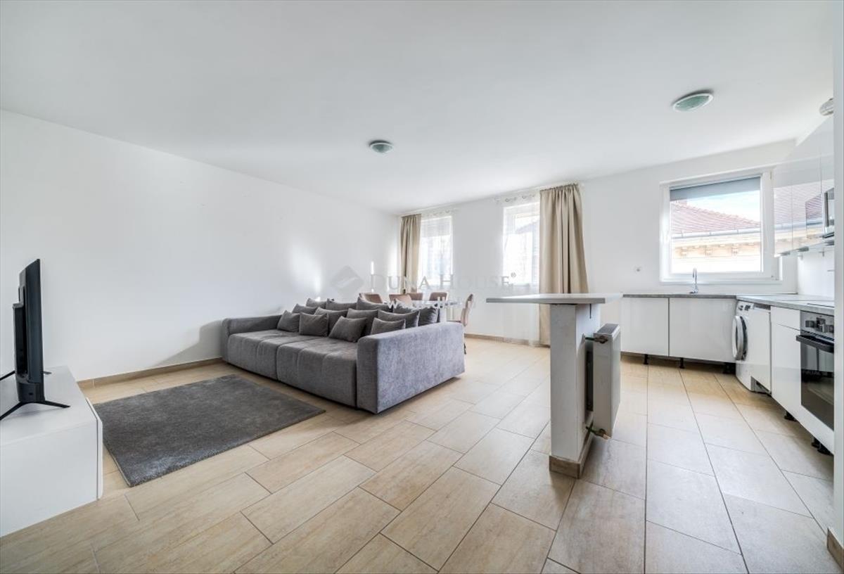 A 3. emeleti, világos, bútorozott lakás 2 hálószobával, hatalmas, amerikai konyhás nappalival, egy nagyobb kádas és egy kisebb zuhanyzós fürdővel rendelkezik.
