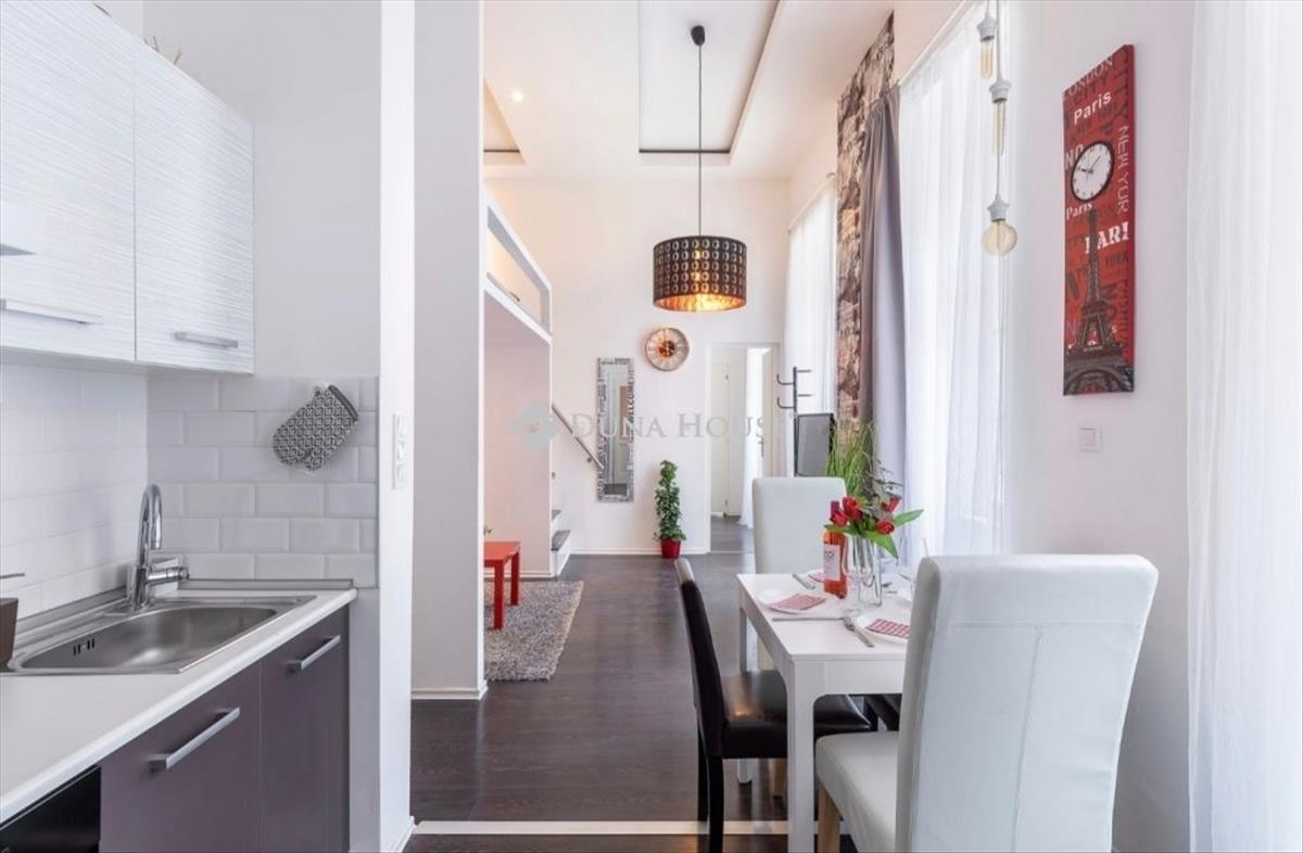 A belváros szívében a Király utcában a Gozsdu udvar szomszédságában eladó egy teljesen felújított, modern fiatalos stílusú, bútorozott, gépesített (mosógép, hűtő, mikró, sütő, hűtő-fűtő klíma) 42 m2-es + 10 m2 -es galériás gyönyörűen berendezett, világos 1. emeleti 2 szobás lakás. a konyha teljesen felszerelt ( hűtőszekrény, mikrohullámú sütő, tűzhely, sütő, kávéfőző, kenyérpirító, edények, evőeszközök), valamint közvetlen kialakítású az étkezővel. a nappali részben van egy kihúzható kanapé, az álló magasággal rendelkező galérián egy 2 személyes ágy, és a hálószobában szintén egy 2 személyes franciaágy található, így akár 6 fő részére is lehet szállást biztosítani. Ezen kívül van egy gardrób helyiség is ahová kényelmesen és praktikusan el lehet rakni a ruhákat és egyéb holmikat. a fürdő és a wc egy helyiségben található. Fűtése Nobo panellel és hűtő-fűtő klíma berendezéssel megoldott. a lakás K-Ny tájolású, világos és csendes, mert belső udvarra néző. a lakás teljesen berendezésével, gépesítve eladó. a bejáratot biztonsági bejárati ajtó védi ráccsal felszerelve. Azonnal költözhető! a lakás remek választás saját használatra, vagy befektetési szempontból a rövid airbnb engedélyezett, a lakás jelenleg is így van használatban, minden engedéllyel, és a működtetéssel és megbízottal átadó, folyamatos bevételt biztosítva működik - vagy hosszú távú kiadásra, tökéletesen kialakított és felszerelt. a környék és az elhelyezkedés:A Király utcában, a Kazinczy utca és a Gozsdu udvar a rendkívüli éjszakai életének szomszédságában, a Nagy Zsinagóga és a Deák tér, az Operaház és a, Szent István Bazilika, a Váci utca, a Parlament épülete és a Duna-korzó közelében található az ingatlan. a környék tele van bárokkal és éttermekkel, szórakozó helyekkel. a Deák Ferenc tér kiváló tömegközlekedési kapcsolatokkal rendelkezik, mint például a metró vonalak, az éjszakai járatok vonalai, és a repülőtéri buszok (100e). Érdeklődésével és megtekintési szándékával várom megtisztelő hívását!További ajánlataim: https://mosonyi-krisztian. Dh. Hu/