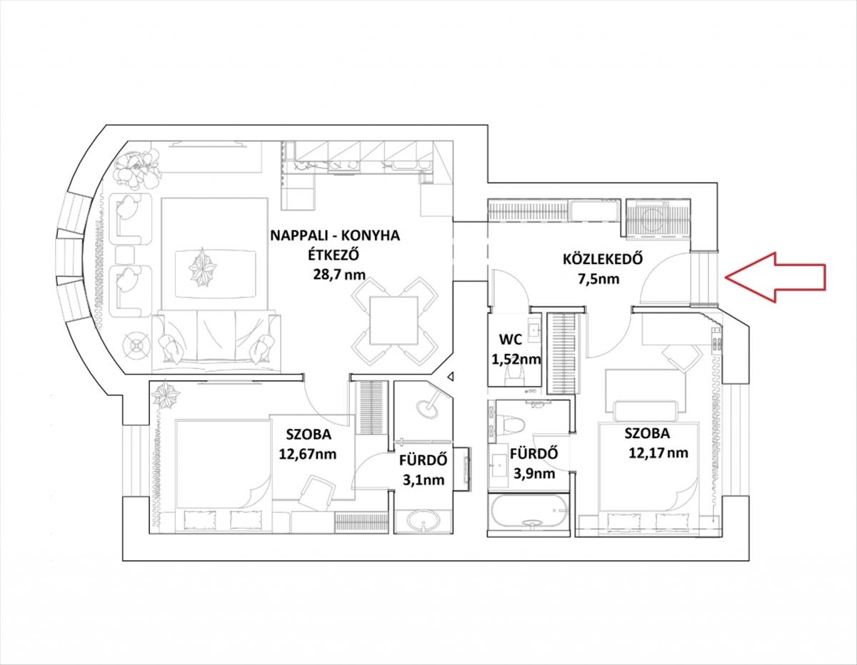 Ez a lakás tökéletes választás azoknak, akik exkluzív otthont keresnek, vagy befektetésként rövid és hosszú távú kiadásban gondolkodnak.